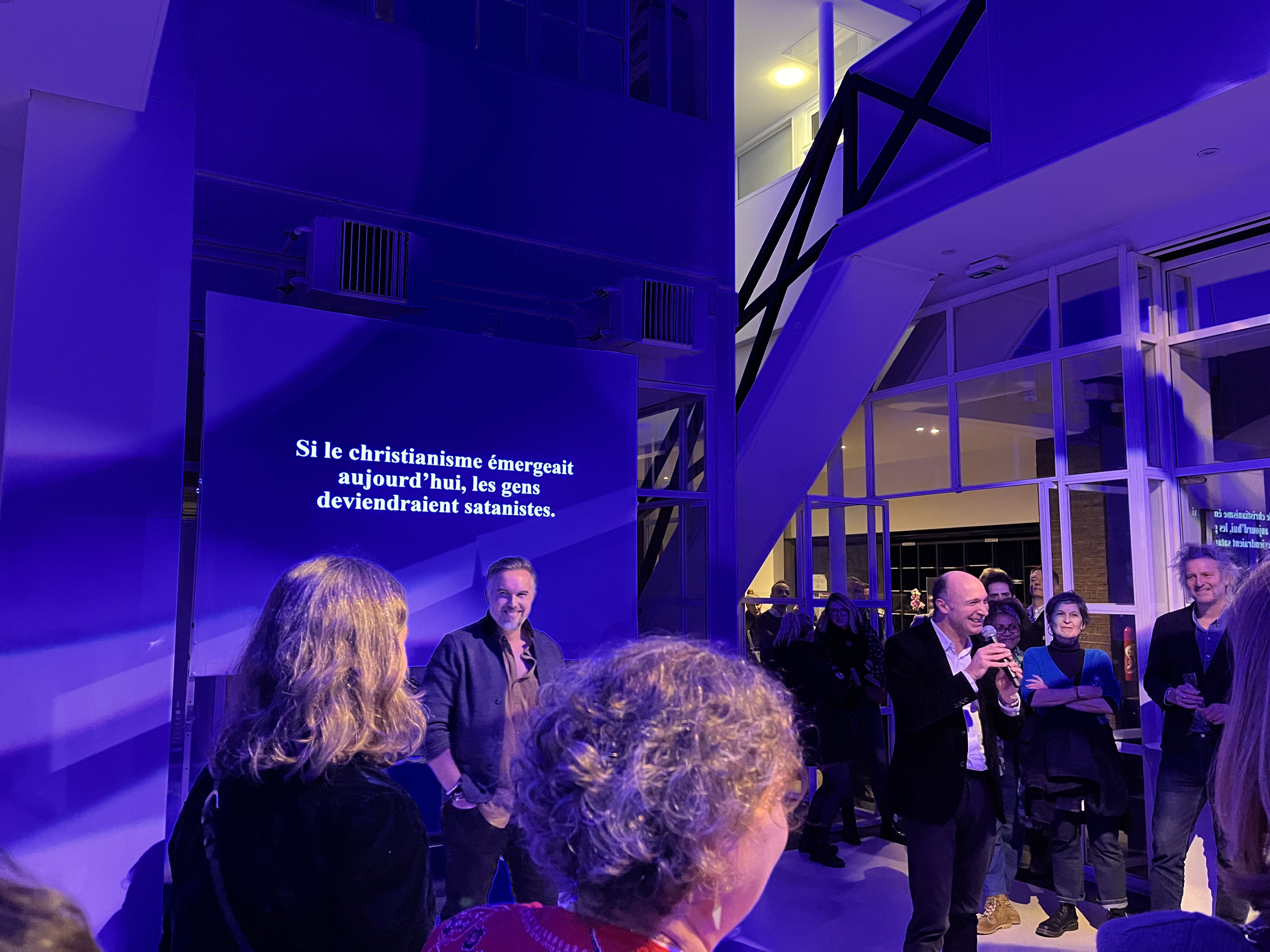L'élément central de la scénographie est une grande sphère blanche suspendue, véritable clin d’œil au phénomène au cœur du récit, tandis qu’un écran géant diffuse les phrases emblématiques de l’œuvre. Ce décor au caractère surprenant crée un écrin de choix pour les prises de parole de l’auteur et de la direction éditoriale, grâce à un système de sonorisation intégralement piloté par l'agence.