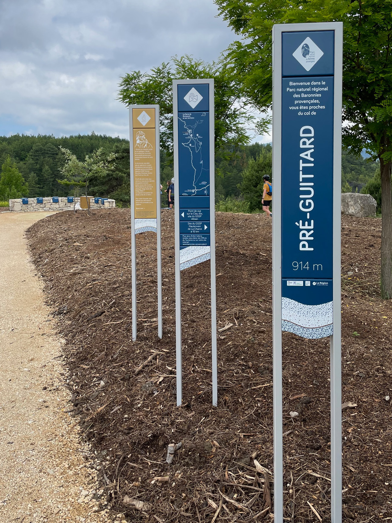 En collaboration avec l’agence de paysagisme Tombolo et l’agence de scénographie Atelier Mathilde Meignan, l’agence a conçu un dispositif de signalétique et d'interprétation pour le col de Pré Guittard, décliné sur cinq autres cols emblématiques du Parc naturel régional des Baronnies Provençales. L'enjeu de ce projet réside dans la création de zones d'arrêt et d'observation qui s’intègrent harmonieusement dans le paysage montagnard, tout en offrant un contenu pédagogique accessible aux randonneurs et aux cyclistes.