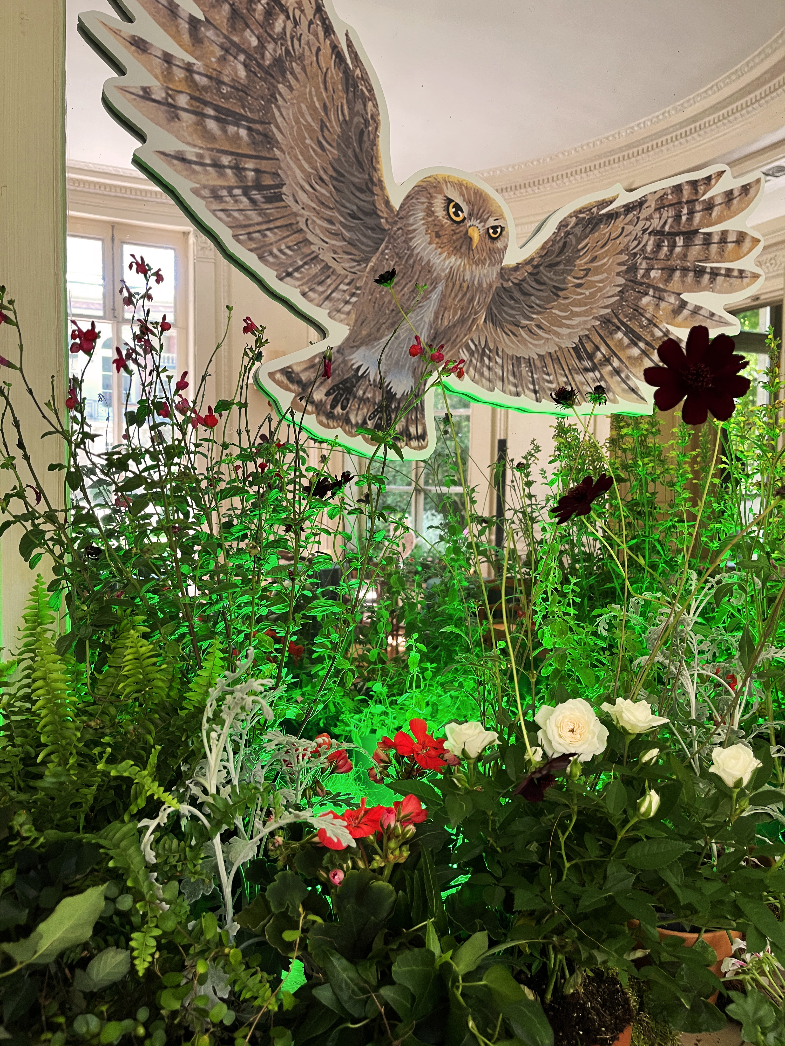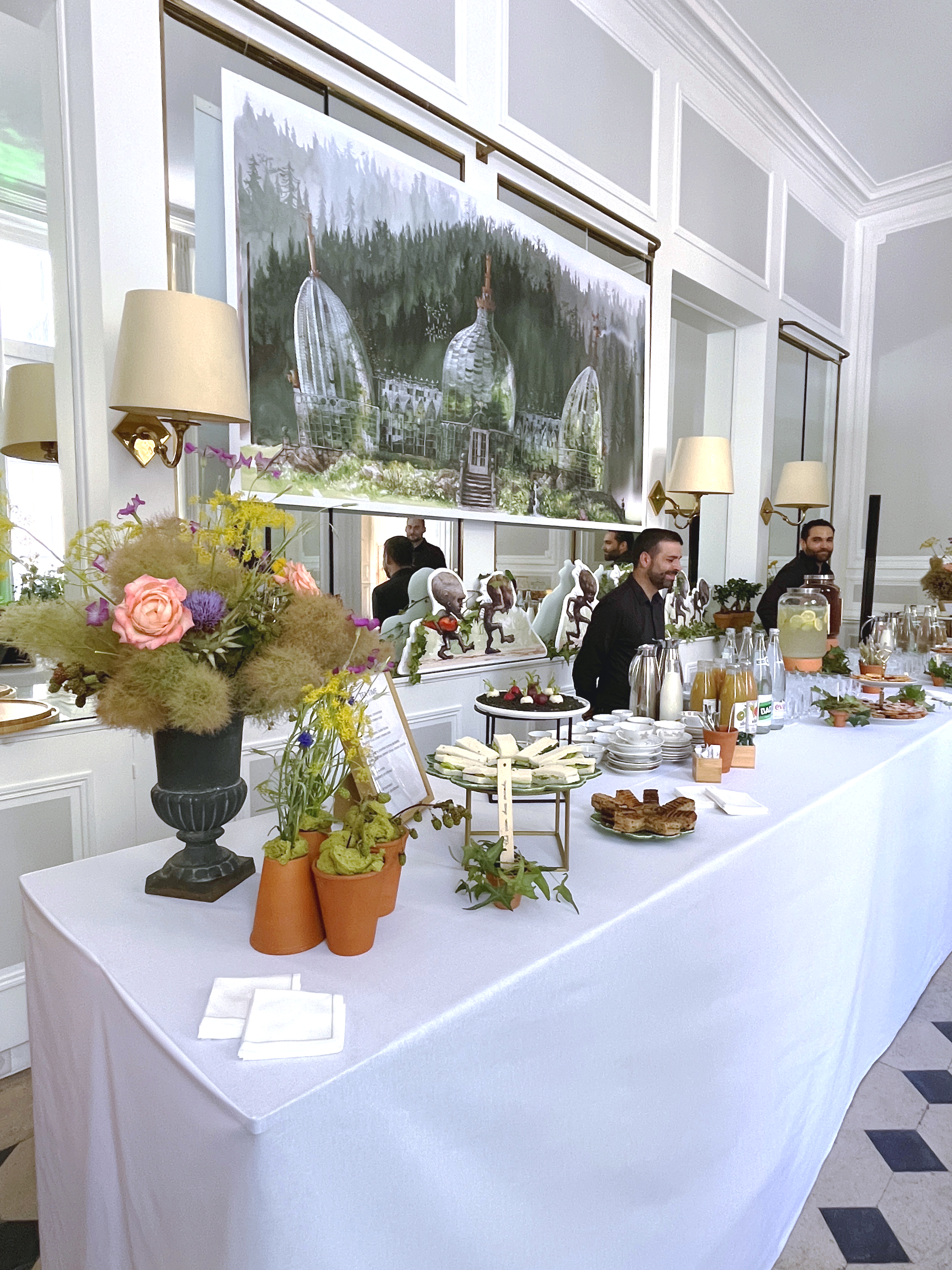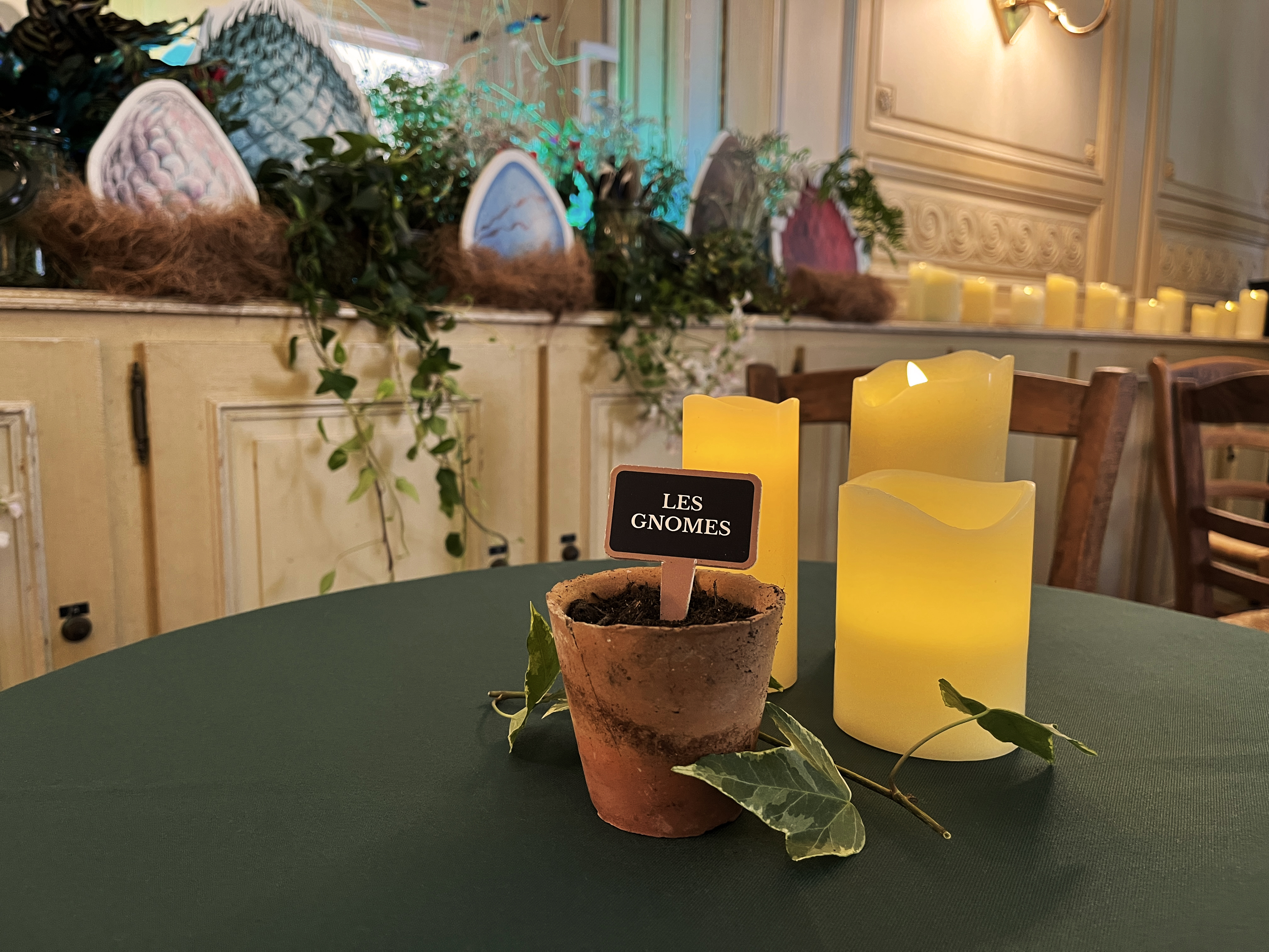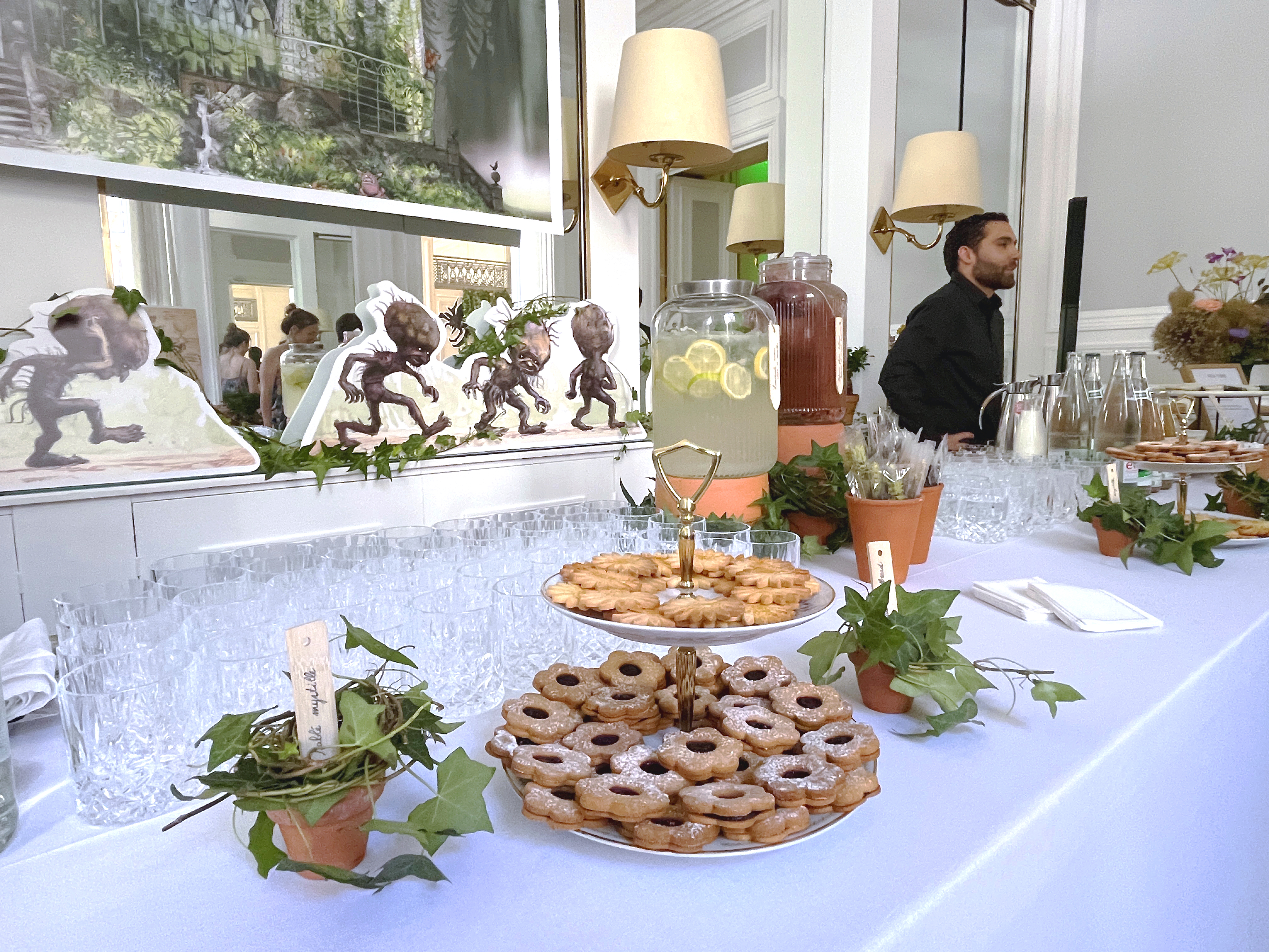 Réalisé en collaboration avec un fleuriste partenaire, le décor se compose de scénettes végétales sur mesure, intégrant des éléments interactifs comme le rempotage de mandragores. Pour prolonger l'expérience, deux illustratrices réalisent en direct les portraits des invités à la main et au pinceau, offrant un souvenir artistique et personnalisé.