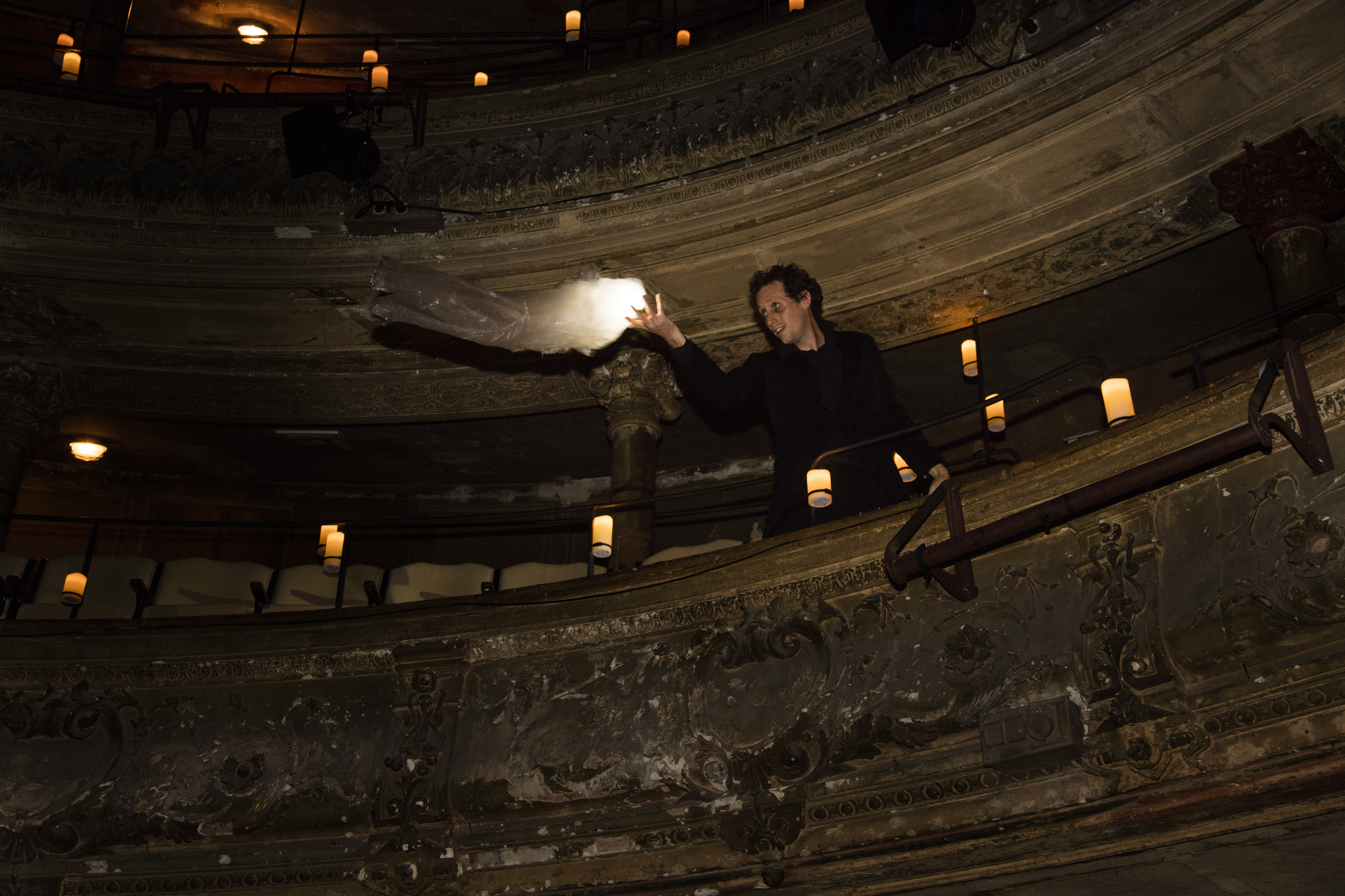 Le décor repose sur une installation magistrale de centaines de bougies suspendues dans le volume du théâtre, créant une atmosphère onirique et mystérieuse. L'immersion est renforcée par des performances de « magie nouvelle » et l’intervention spectaculaire de détraqueurs sur échasses, conférant à l’événement une dimension à la fois poétique et surnaturelle, fidèle aux codes de la saga.