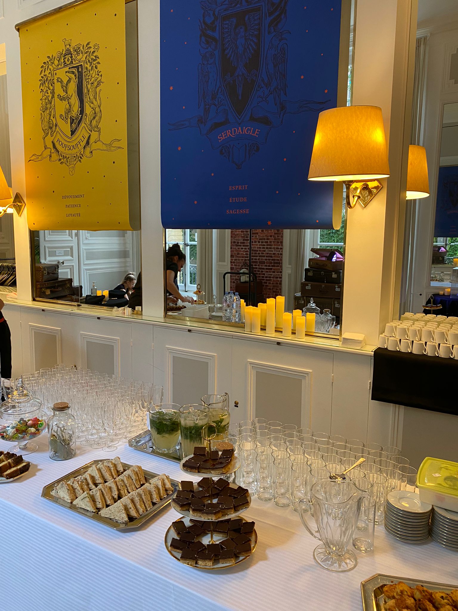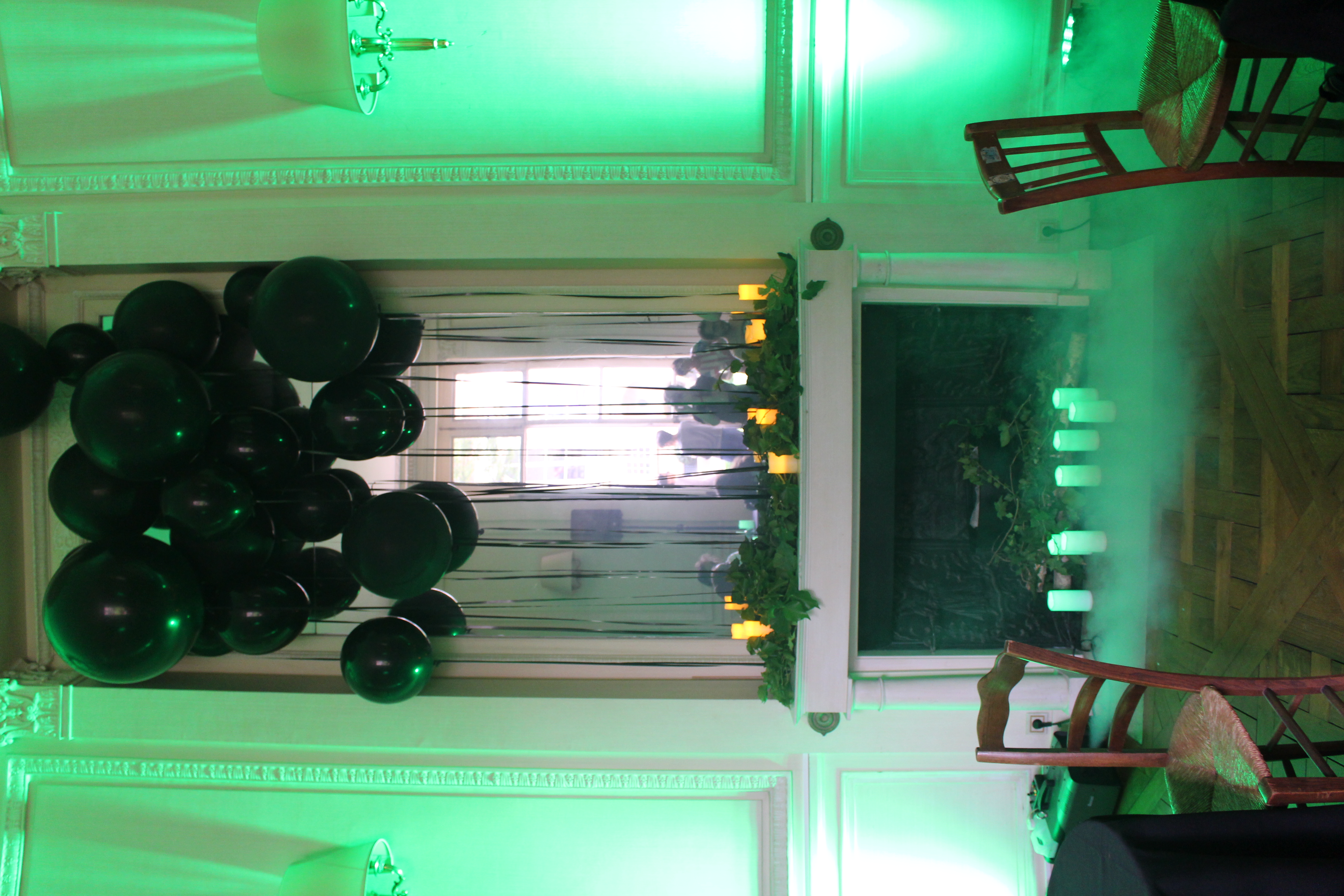 Pour l’édition 2022 de la finale du Tournoi des Sorciers, l’agence investit l’hôtel particulier des éditions Gallimard Jeunesse pour accueillir les soixante finalistes costumés. La scénographie s’appuie sur une mise en lumière verte qui transforme radicalement l’espace, complétée par de grandes grappes de ballons noirs et une constellation de bougies pour installer une atmosphère mystérieuse.