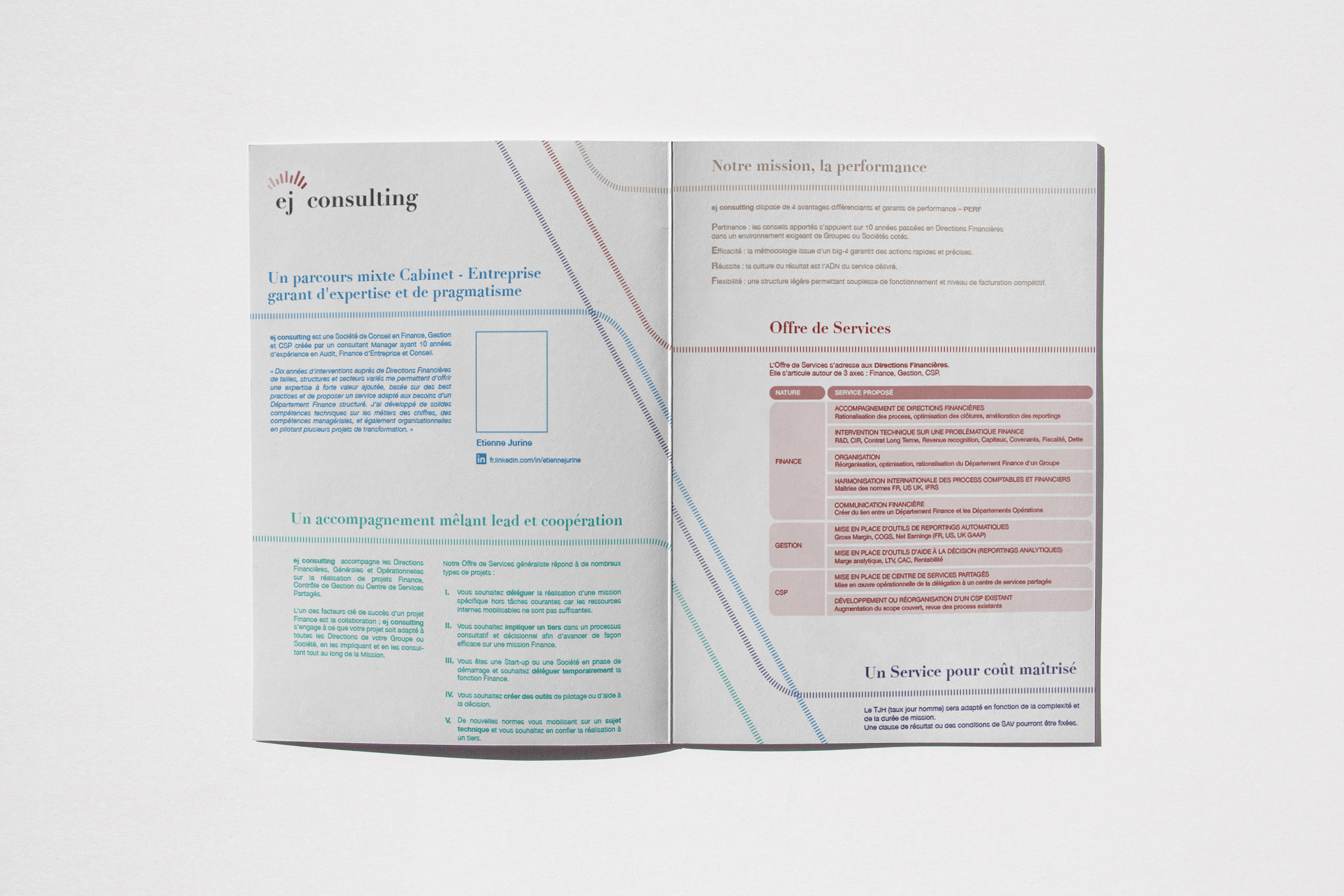 Spécialiste du pilotage financier, EJ Consulting sollicite l’agence pour concevoir une identité visuelle porteuse d’un positionnement singulier : une haute expertise doublée d’une approche humaine. L’enjeu consiste à traduire graphiquement la mission du cabinet — écouter, comprendre et éclairer — afin de se différencier sur un marché exigeant.