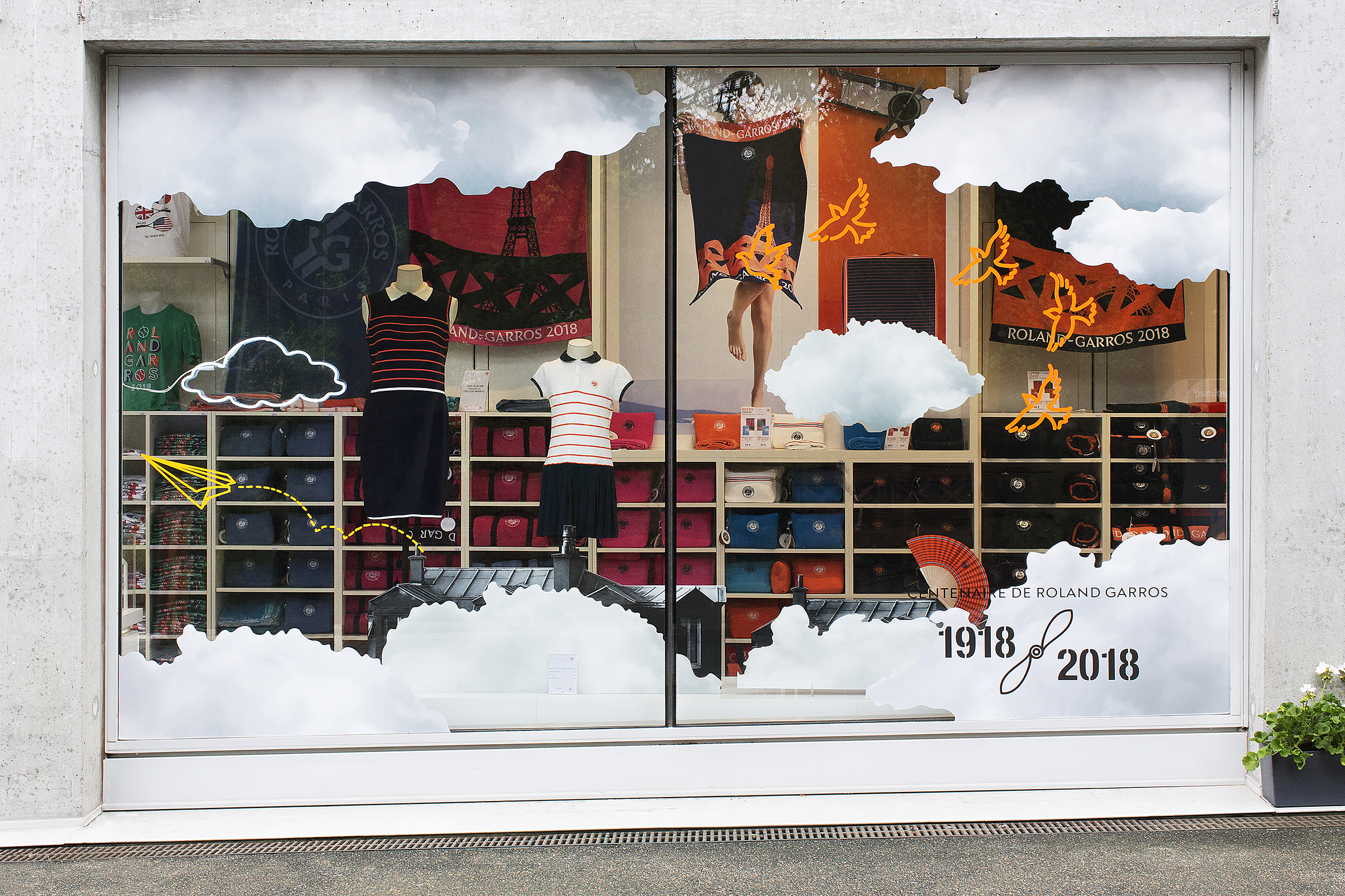 À l’occasion du centenaire de l’aviateur Roland Garros en 2018, la Fédération Française de Tennis rend hommage à cette figure historique à travers une thématique dédiée. L’agence imagine pour les points de vente du stade une scénographie aérienne qui place le récit de l'aviation au cœur de l'expérience retail.