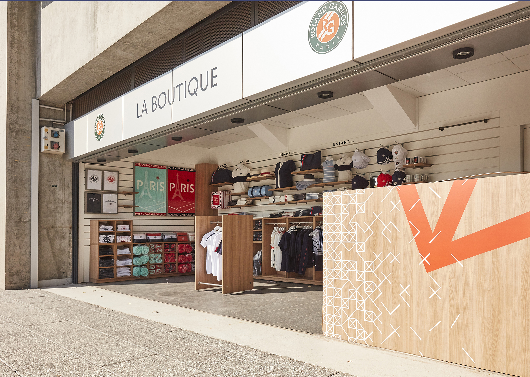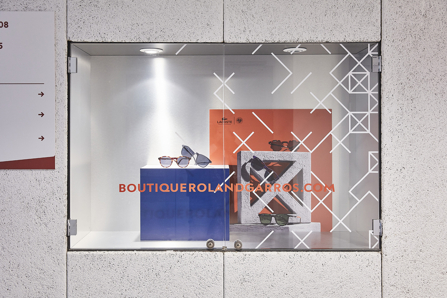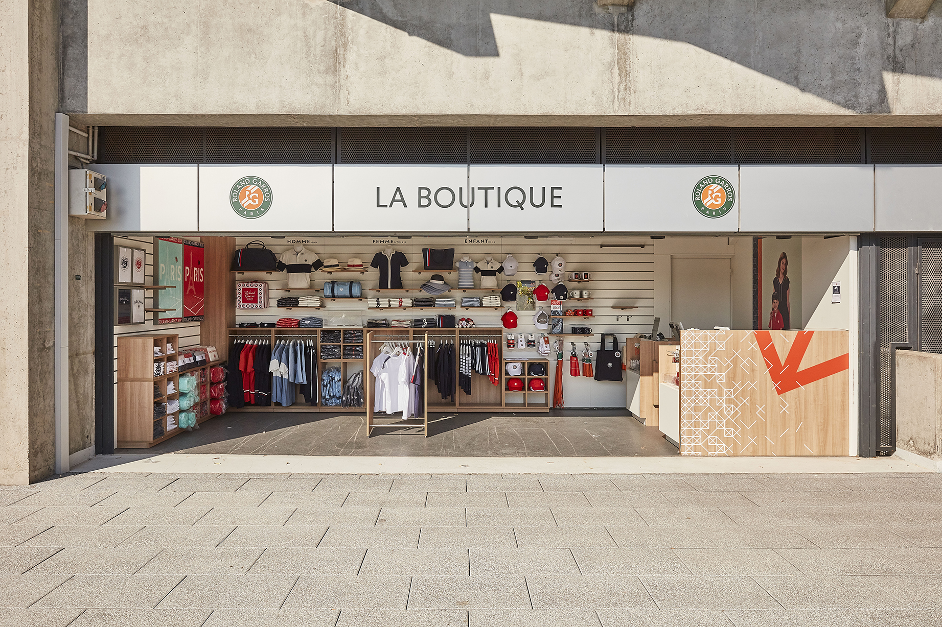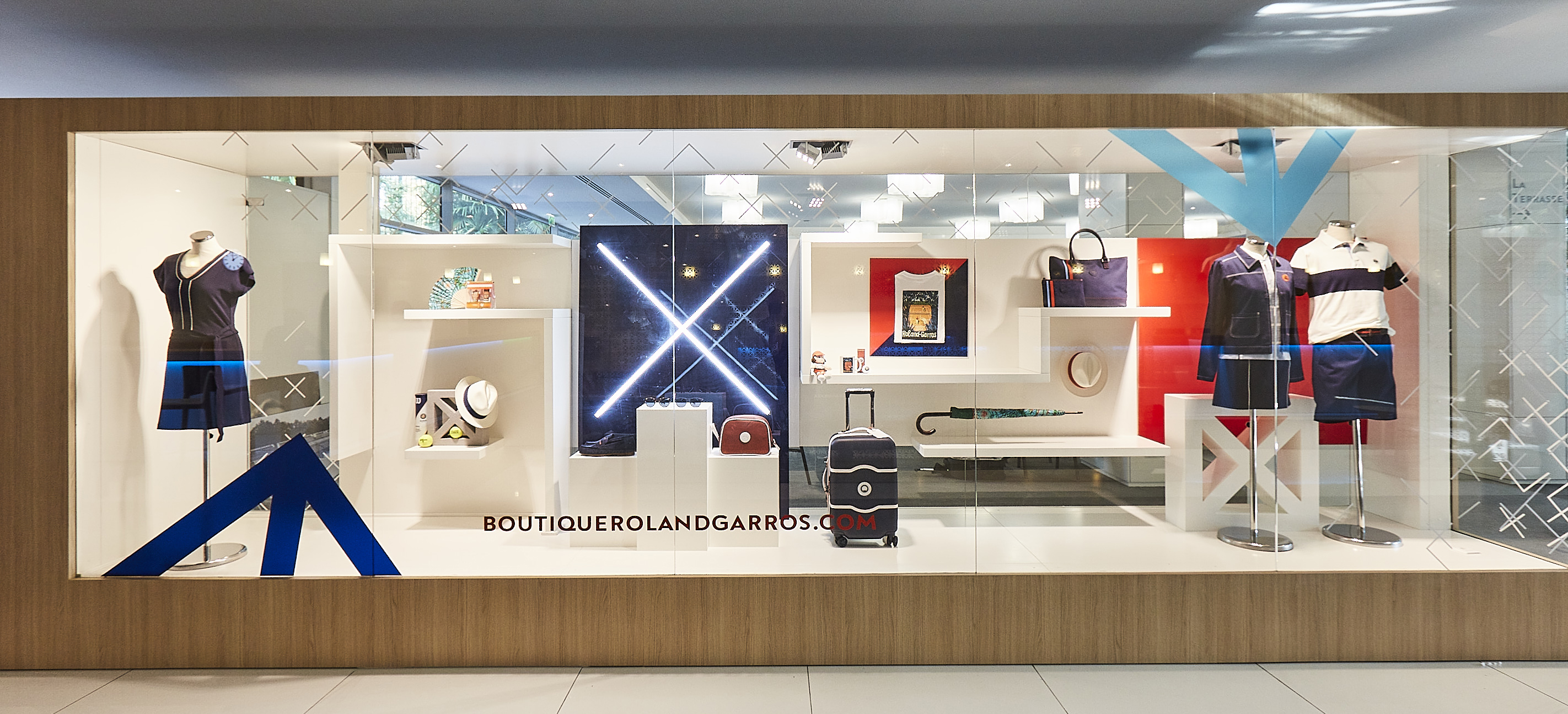 À l’occasion du tournoi, l’agence orchestre une théâtralisation globale des vitrines, des corners et des niches de l'ensemble du stade Roland-Garros. Pour cette édition, elle propose une direction artistique complète qui unifie les visuels de communication et la mise en scène physique des points de vente.