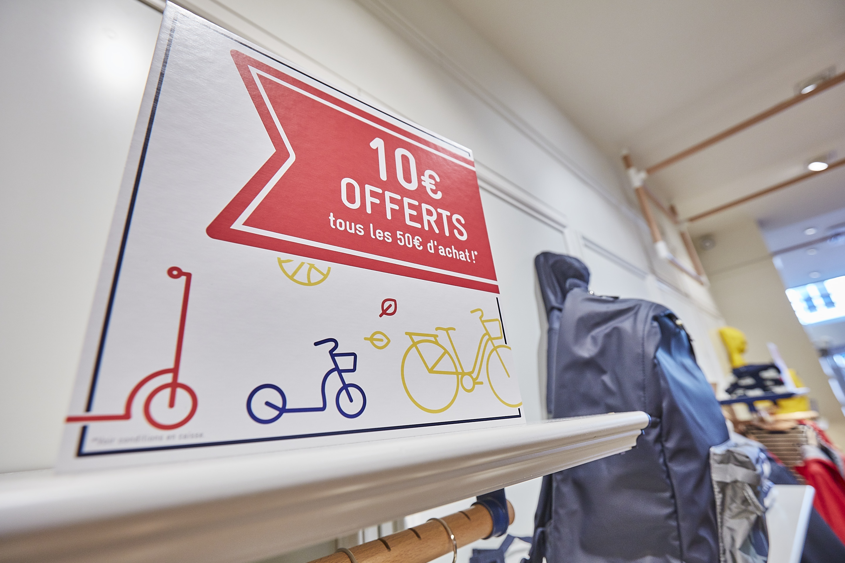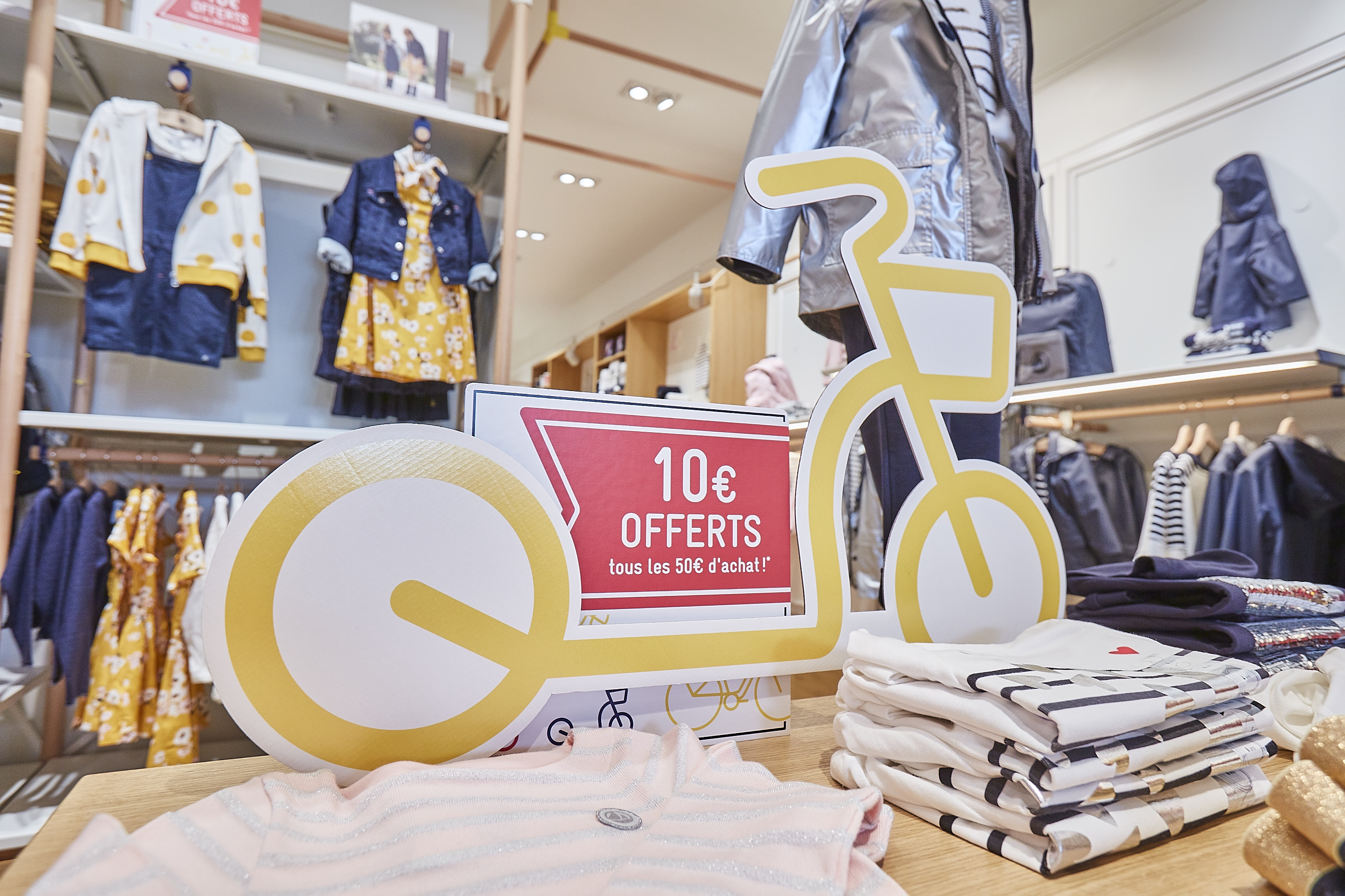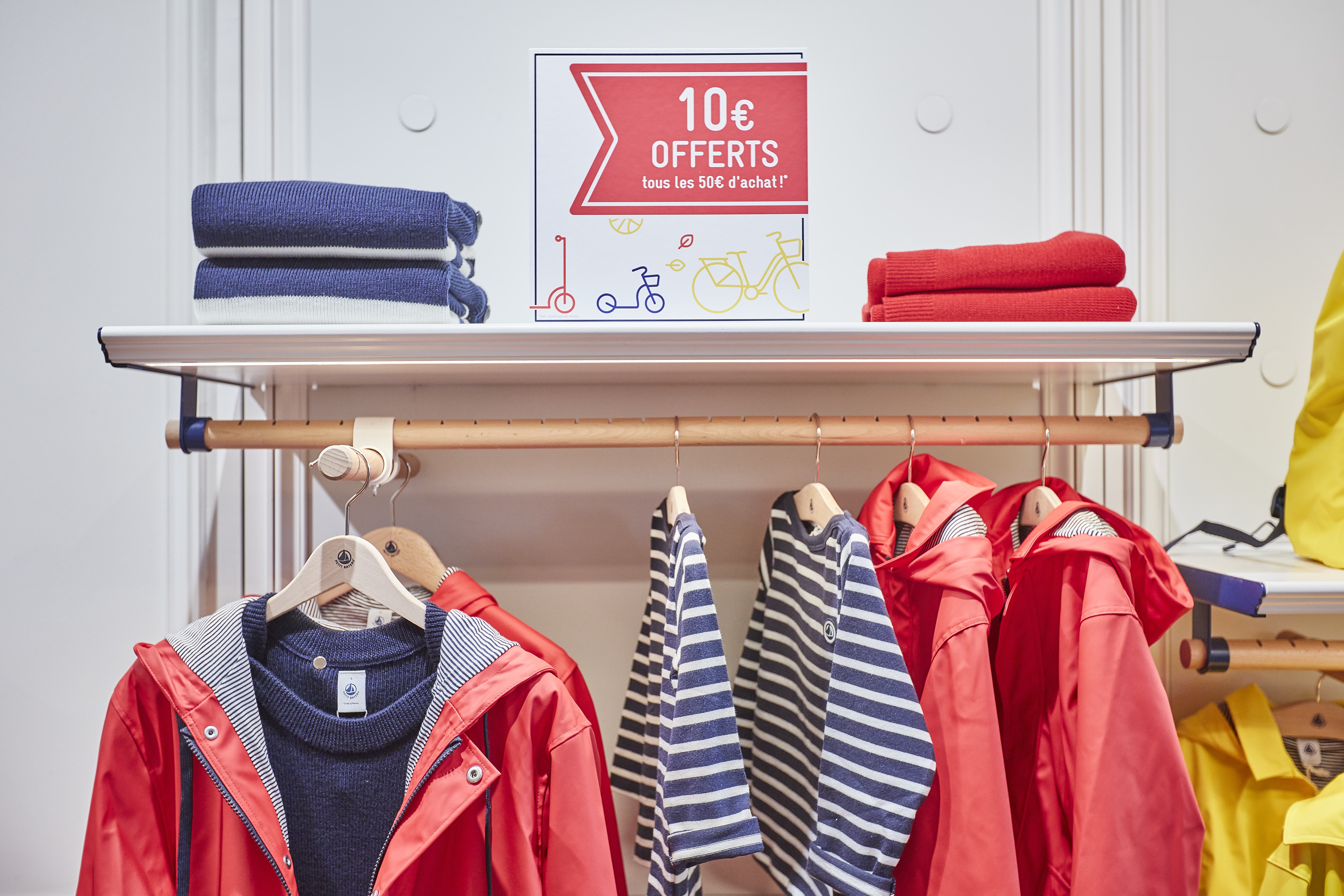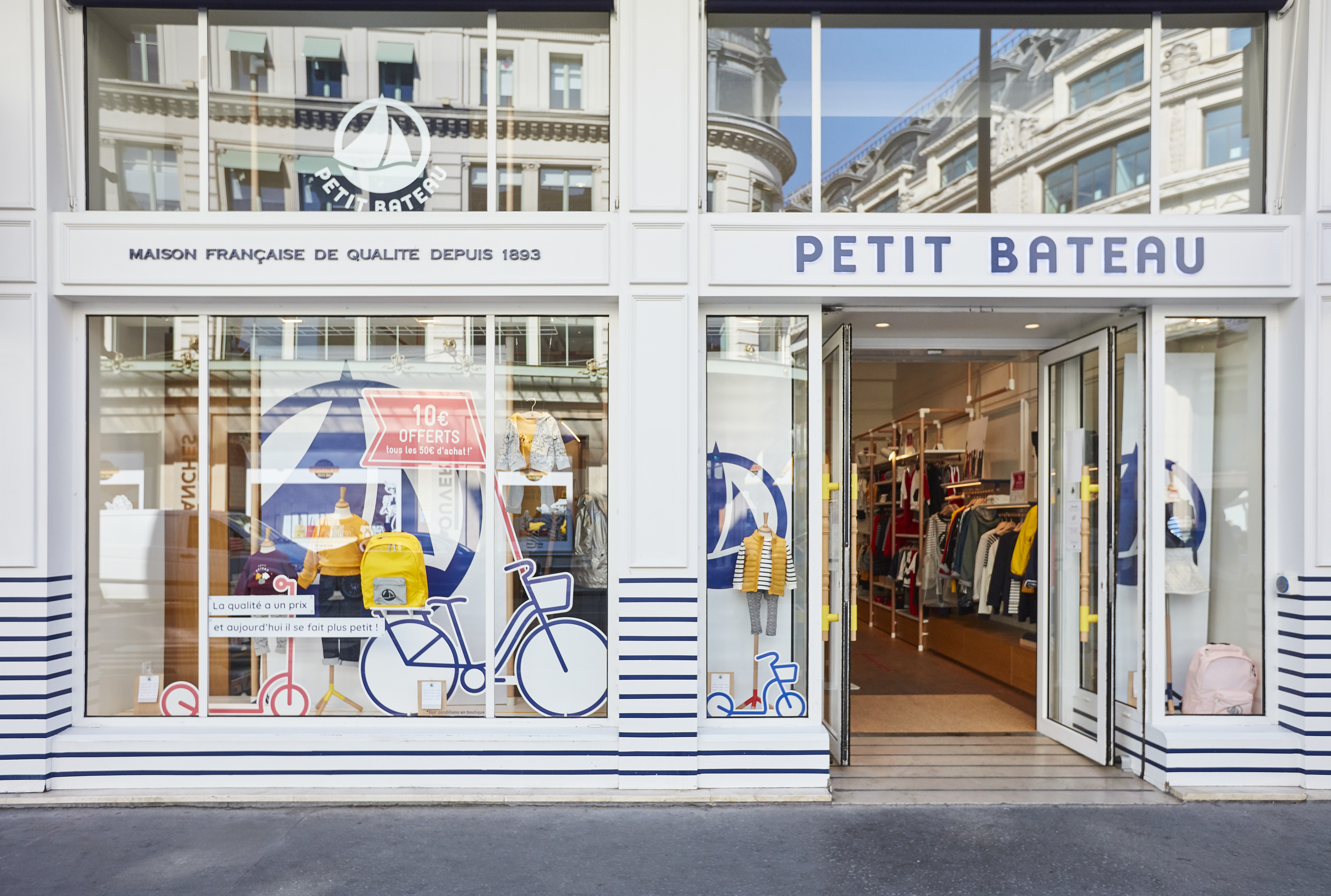 Petit Bateau souhaite valoriser la collection accessible tout en créant un univers graphique et ludique, facile à lire dans le réseau de boutiques et intégrant la promotion de manière harmonieuse.